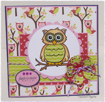 I used this sweet Owl from the digital stamp collection Wonderful Woodland Creatures, paired with 3 different pattern digital papers from the Color Infusion collection.